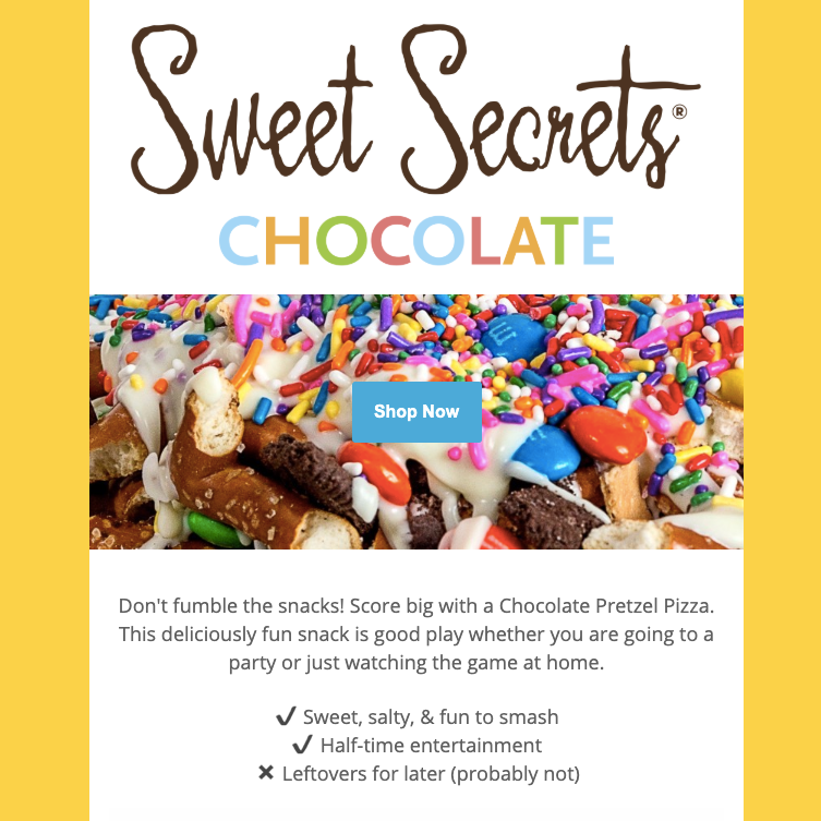Sweet Secrets Chocolate is a nationally selling chocolate company run by two powerhouse women who know chocolate, business, and how to have fun with both. They sell their gourmet chocolate creations exclusively online to consumers as well as providing client and employee gifting services for businesses and corporations. I was hired to update and manage their Shopify website and revamp their email and social media marketing. I optimized the website and created and scheduled eye-catching and data driven emails and social media campaigns which contributing to a 69% sales increase in the first year.